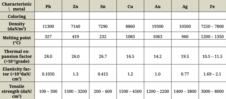 Bakar je jedan od najstarijih korišćenih metala, u početku češće u kovanim oblicima (ploče različite debljine). Crvenkasta je, vrlo rastezljiva i čekična. U prisustvu vazduha na njegovoj površini se formira zeleni sloj (patina), koji može zamrljati okolne površine ako ga rastvori vlaga. Zbog formiranja poroznog materijala izbegnuto je njegovo livenje (takođe zbog toga što je tačka topljenja prilično visoka), ali je ovo pitanje moglo biti prevaziđeno legiranjem.
